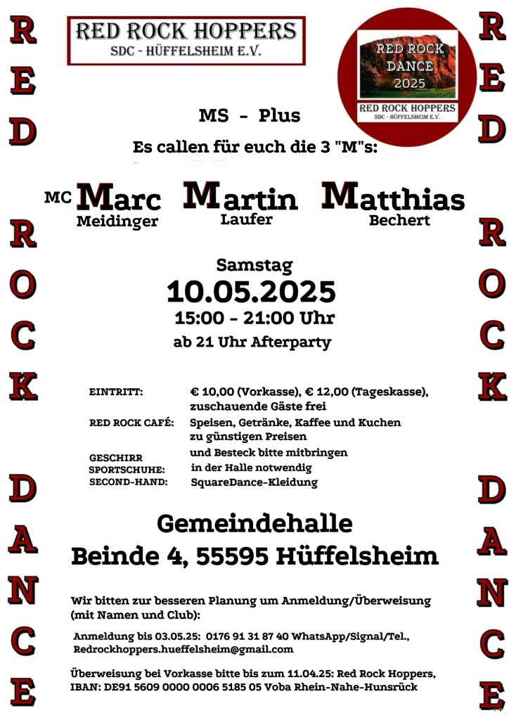 Unsere Leidenschaft für Square Dance geht weit über den regelmäßigen Tanzabend hinaus. Als Redrockhoppers organisieren wir regelmäßig spezielle Events, bei denen wir die Tradition des Square Dance mit einzigartigen Erlebnissen kombinieren. Ob Themenabende, Workshops, Tanzbälle oder private Feiern – wir bringen Spaß, Bewegung und gute Laune in jede Veranstaltung.